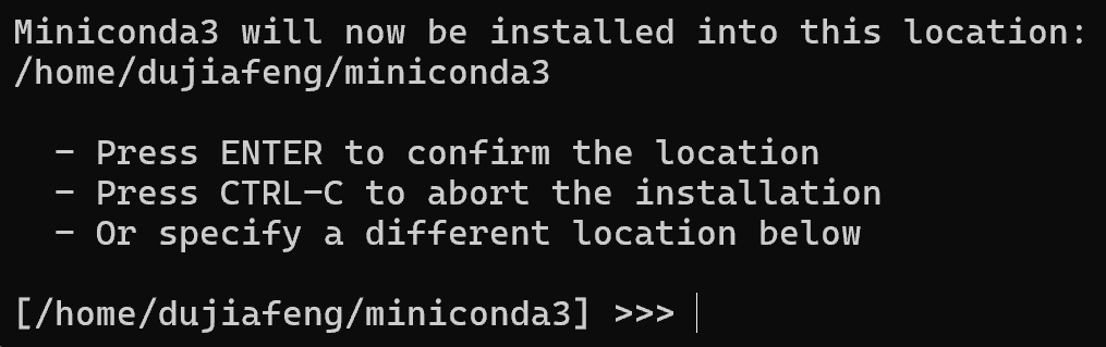 在执行~/miniconda3/bin/conda init bash后,确保你已经重新启动了终端窗口或者执行了source ~/.bashrc或source ~/.bash_profile,以确保初始化的更改生效。检查 Miniconda 安装路径: